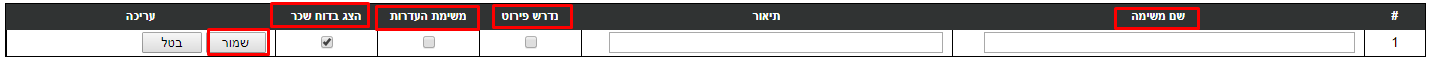 לאחר מכן מזינים את שם המשימה, האם זו משימת היעדרות והאם להציג אותה בדו"ח שכר ושומרים :